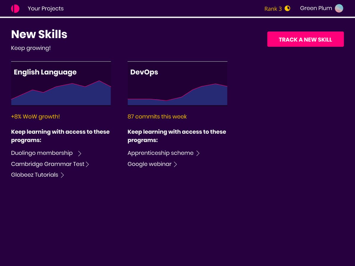 This is your dashboard:We want you to feel like you’re making progress with your career by visually reminding you.